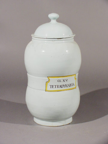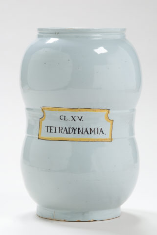 Este facto explica o nome inscrito no Pote – TETRADYNAMIA – refere-se a flores hermafroditas com seis estames livres, sendo quatro maiores e dois menores, a que se associou um modelo floral de R. Brendel (BOT.00570) de uma planta de mesma Classe de Lineu, a espécie Brassica napus L. , conhecida por nabo ou colza.