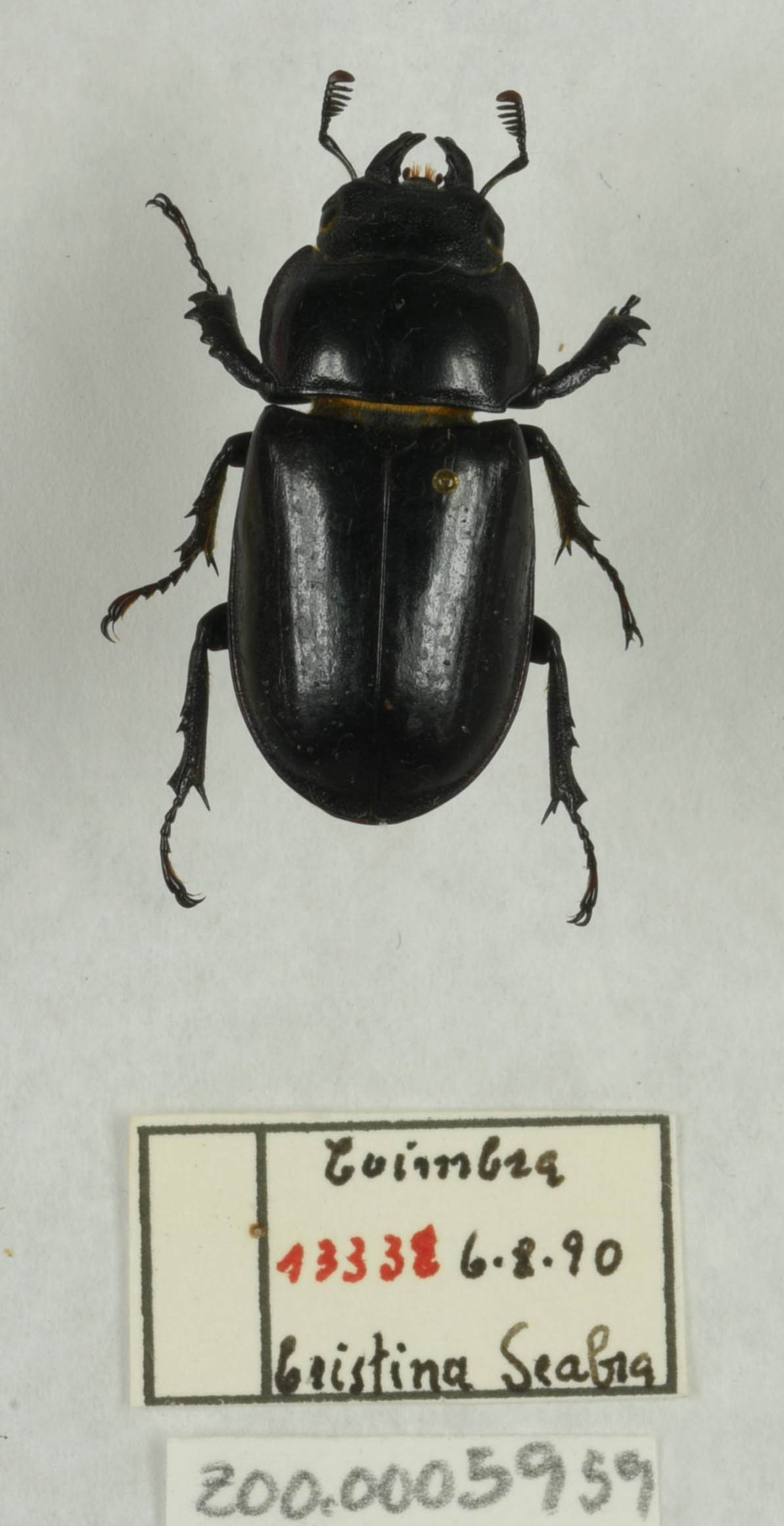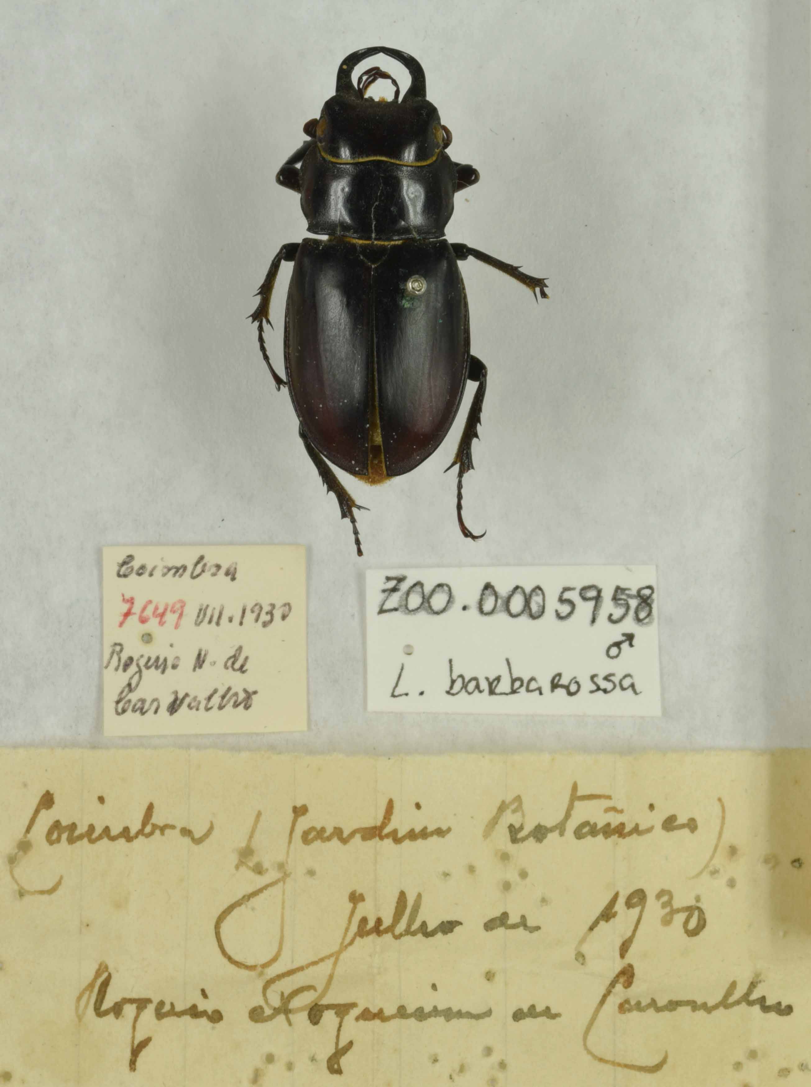 Em 2017, no âmbito do projeto VACALOURA.pt, foi feito o inventário dos espécimes existentes no Museu. Numa estimativa de cerca de 300 mil espécimes de insetos existentes no MCUC e mais de 30.000 escaravelhos de Portugal, apenas foram encontrados 18 exemplares pertencentes a esta espécie.