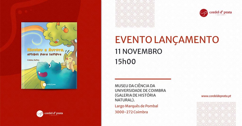 A apresentação do Livro "Nicolau e Aurora, amigos para sempre", da autoria de Cristina Rufino, decorrerá na Galeria de Zoologia do Museu da Ciência da Universidade de Coimbra, no próximo dia 11 de novembro, pelas 15h00. Para além da autora, contamos com a presença da Filipa Queiroz, Directora da revista Coimbra Coolectiva e ainda da Helena Faria, Fundadora da Camaleão, Associação Cultural.