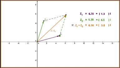 Nesta sessão, utilizando aplicações interativas, construídas nos programas mencionados anteriormente, iremos visualizar e explorar geometricamente os números complexos e as suas operações. Serão apresentadas ainda aplicações interativas na forma de exercício. Nesta situação, se o aluno construir a solução correta ao resolver o problema, o programa reconhece-a imediatamente, independentemente do método de resolução.