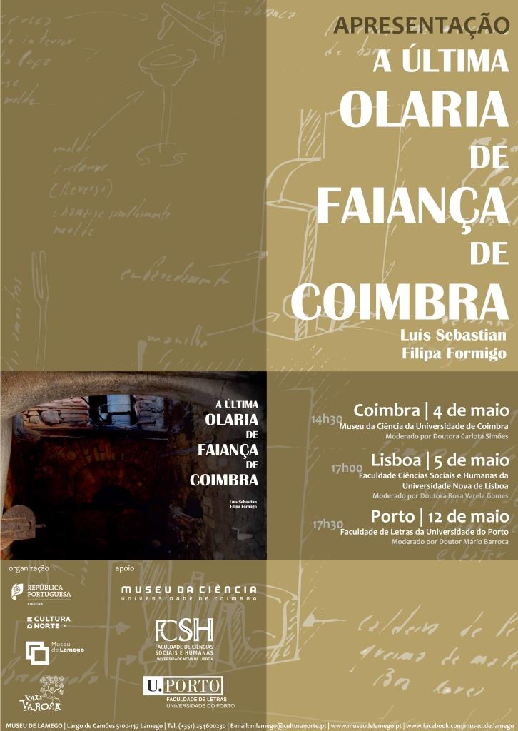 Centro oleiro com maior produção nacional e projeção internacional, Coimbra foi desde o século XVI um importante centro produtor de faiança. Contando com centenas de olarias, que compunham o Bairro das Olarias, chega ao século XXI com apenas uma, que haveria de encerrar em 2007. “A Última Olaria de Faiança de Coimbra” representa a última memória das olarias coimbrãs, através do registo e estudo de tradições seculares. A obra, numa edição da Direção Regional de Cultura do Norte, Museu de Lamego e Vale do Varosa, em forma de e-book, será apresentada em Coimbra (4 de maio), Lisboa (5 de maio) e Porto (12 de maio).