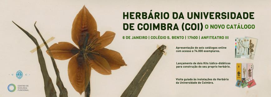 No próximodia 6 de Janeiro, pelas 17H00, no Anfiteatro III (rés-do-chão) do Ed. S. Bento (DCV), irá ocorrer o lançamento do novo Catálogo online do Herbário da Universidade de Coimbra (COI).