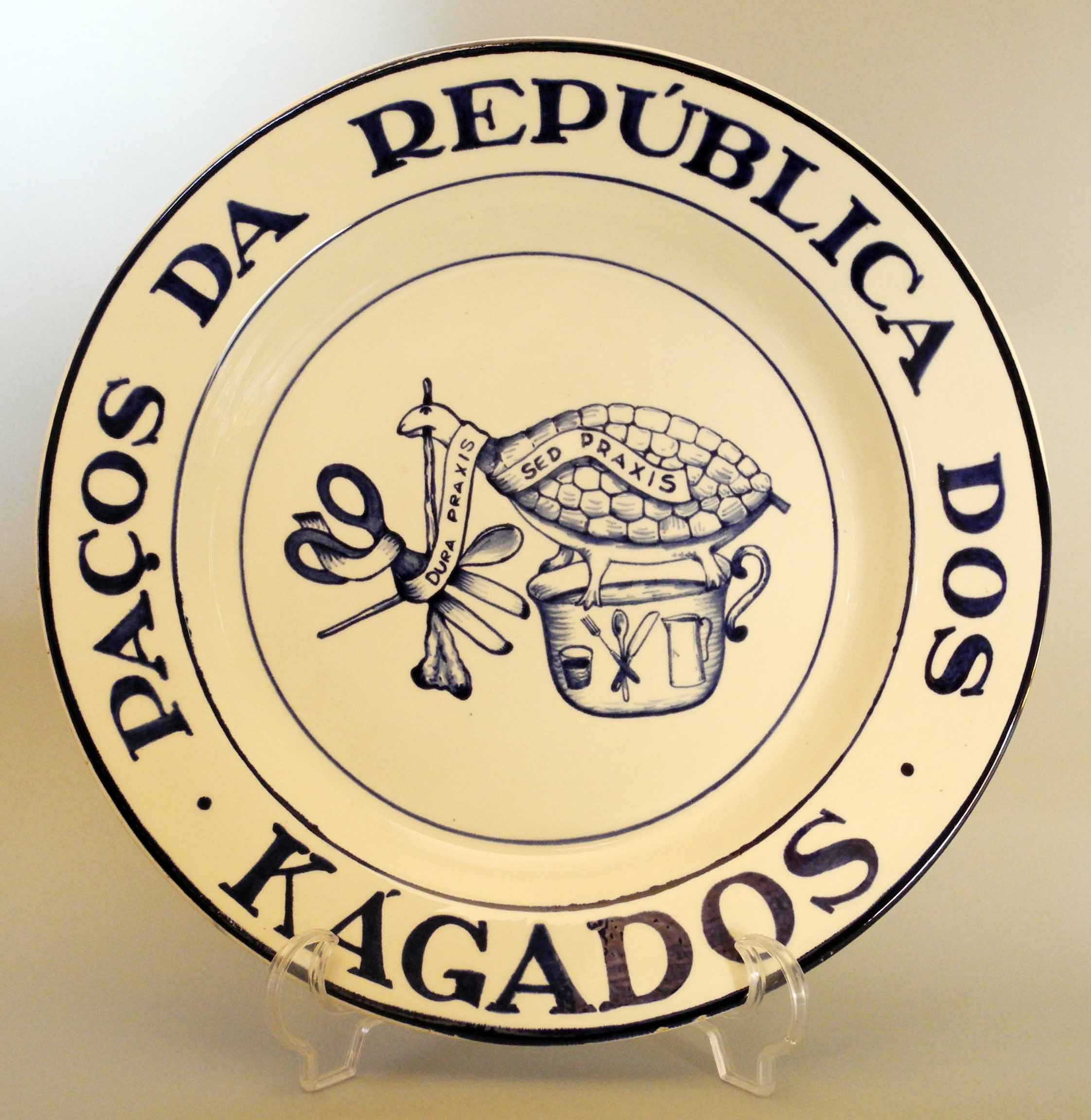 O objeto em exposição representa a República dos Kágados, a mais antiga de entre as duas dúzias destas casas que subsistem em Coimbra. Tendo sido instituída a 1 de Dezembro de 1933, é ainda uma das que permanece no velho território estudantil do bairro alto da cidade.