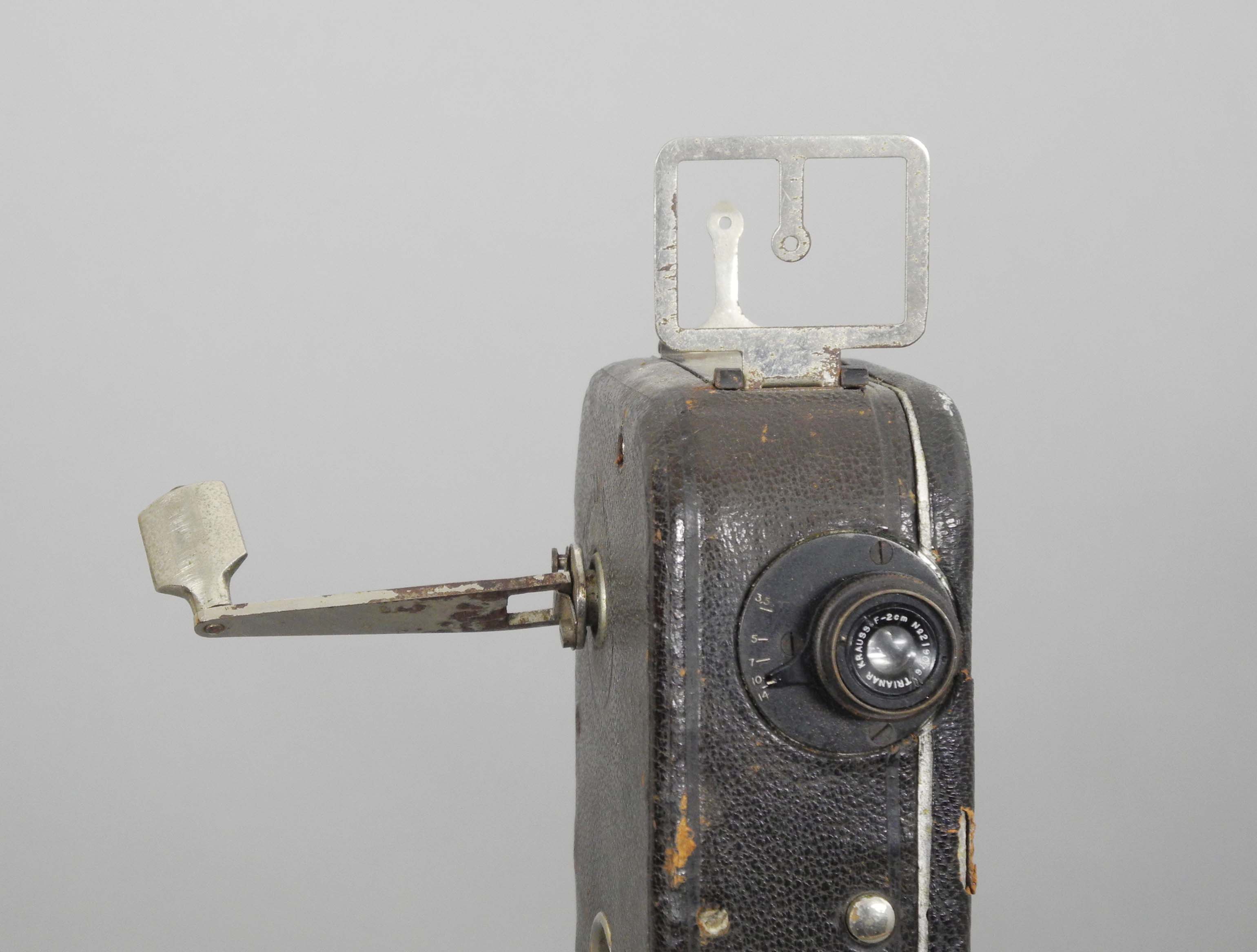 A câmara de filmar que aqui apresentamos pertenceu a Egas Moniz. De fabrico francês, da marca Pathé-Baby, esta máquina portátil de pequenas dimensões revolucionou a captação de imagens pelos leigos da sétima arte. A partir da década de 20 do século passado foi fabricada aos milhares tendo revolucionado a captação e o registo de imagens. Durante a gravação é o operador que avança manualmente com o filme, através da rotação da manivela, a uma velocidade constante de 2 rotações por minuto.