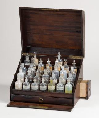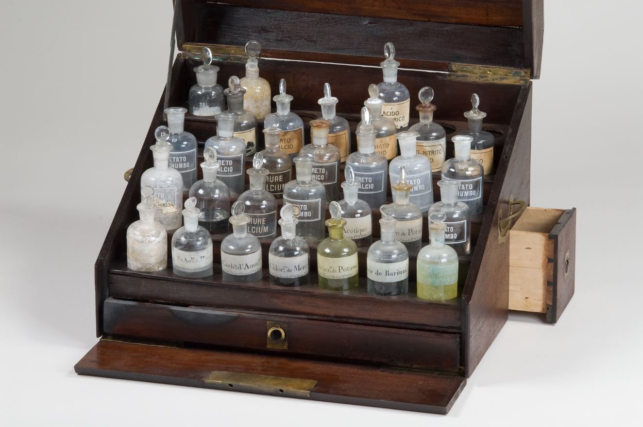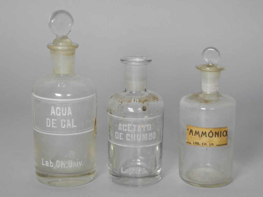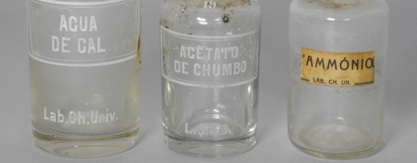 Nas coleções do Museu da Ciência existem inúmeros frascos de vidro e de forma cilíndrica, que servem para armazenamento de reagentes, quer no estado líquido quer no estado sólido. Alguns destes frascos têm o nome do produto químico gravado no vidro, bem como a inscrição e inegável ligação ao edifício do Laboratório Chimico.
