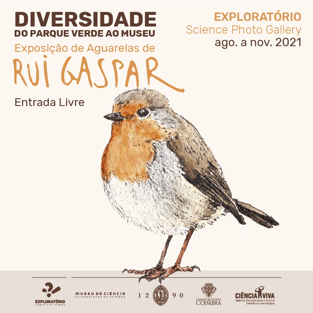 A exposição de aguarelas de Rui Gaspar Diversidade - Do Parque Verde ao Museu pode ser visitada no Exploratório - Centro de Ciência Viva de Coimbra, de agosto a novembro de 2021.