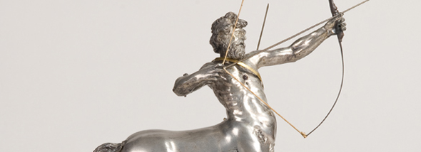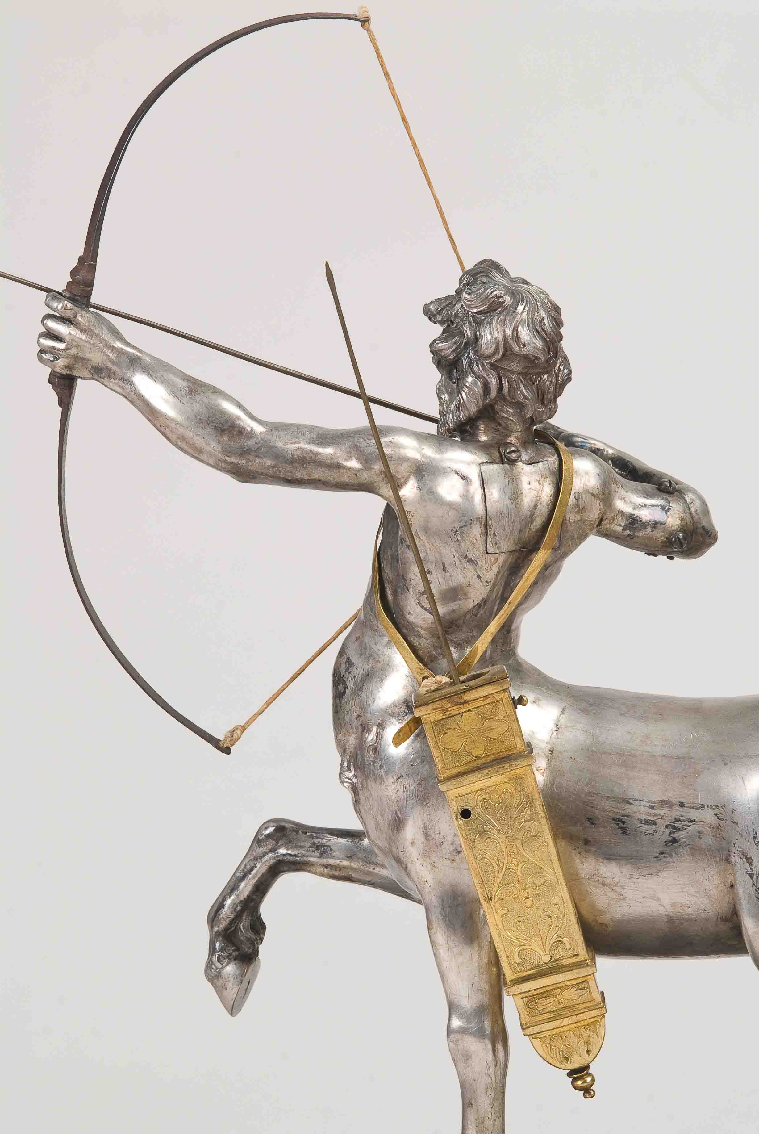 O centauro de prata está apoiado numa base, onde se podem observar outras figuras: sapos, caracóis e insetos. Em relevo vêem-se dois insetos e dois sardões, estes últimos como que se arrastassem por entre as pernas do centauro. Tem a pata dianteira erguida, o braço esquerdo estendido segurando um arco, o corpo tenso, pronto a disparar a seta.