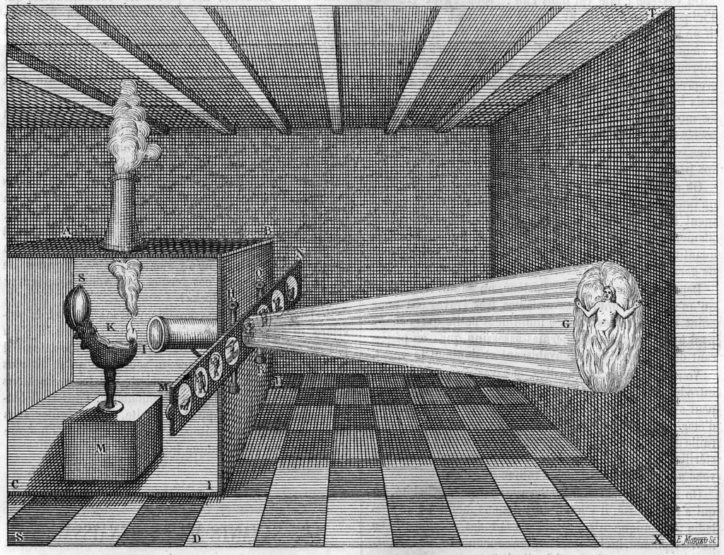 Uma Lanterna Mágica é um aparelho que possui uma fonte de luz e uma lente (ou um conjunto de lentes) através da qual é projetada uma imagem pintada numa superfície de vidro. A fonte de luz nos primeiros modelos do século 17 era uma vela ou uma lamparina, sendo posteriormente substituída por uma lâmpada elétrica, após a descoberta da eletricidade.