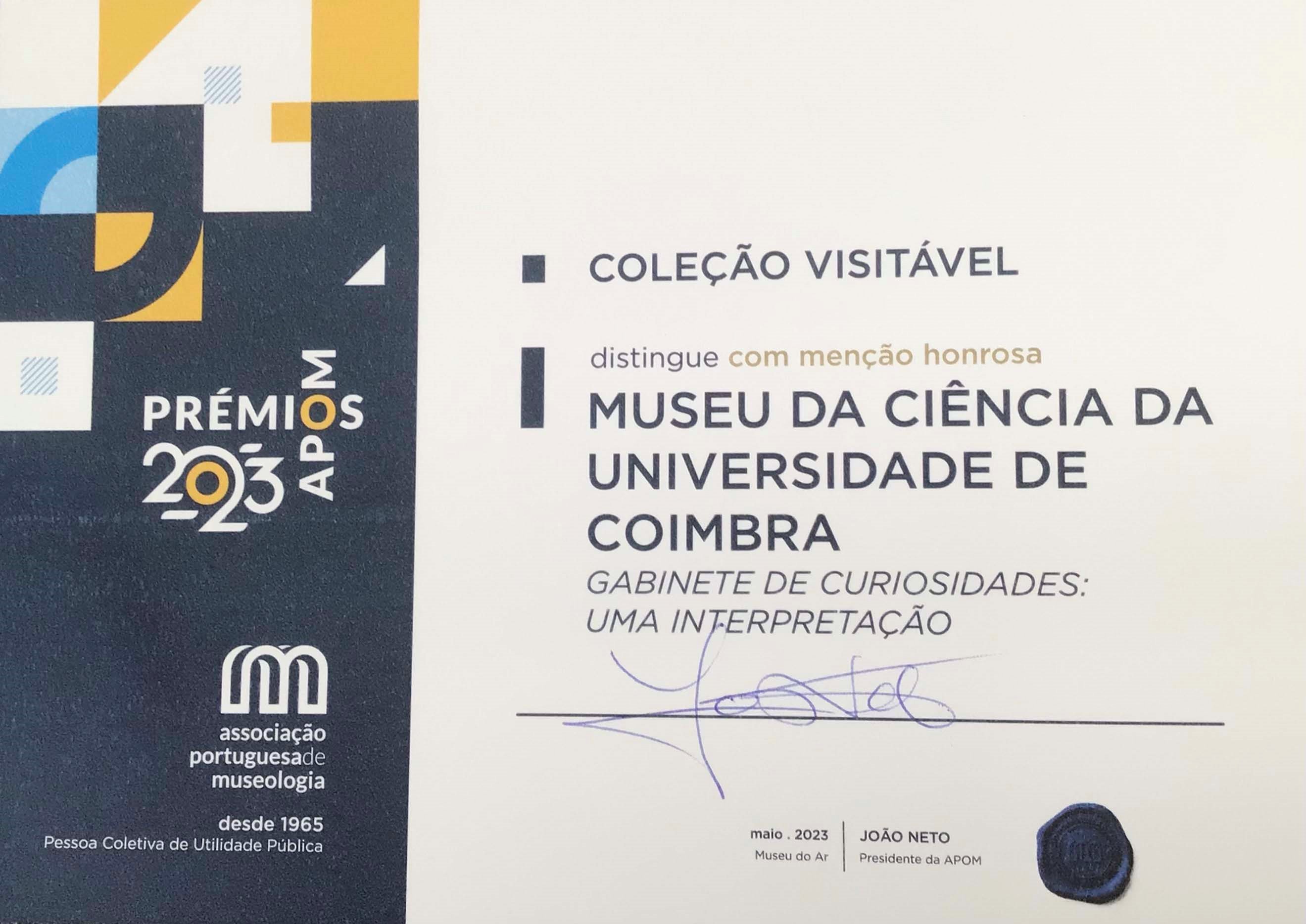 O Museu da Ciência da Universidade de Coimbra acaba de receber um prémio atribuído pela Associação Portuguesa de Museologia (APOM), entidades que desde 1997 atribui prémios anualmente a museus e projectos na área da museologia.