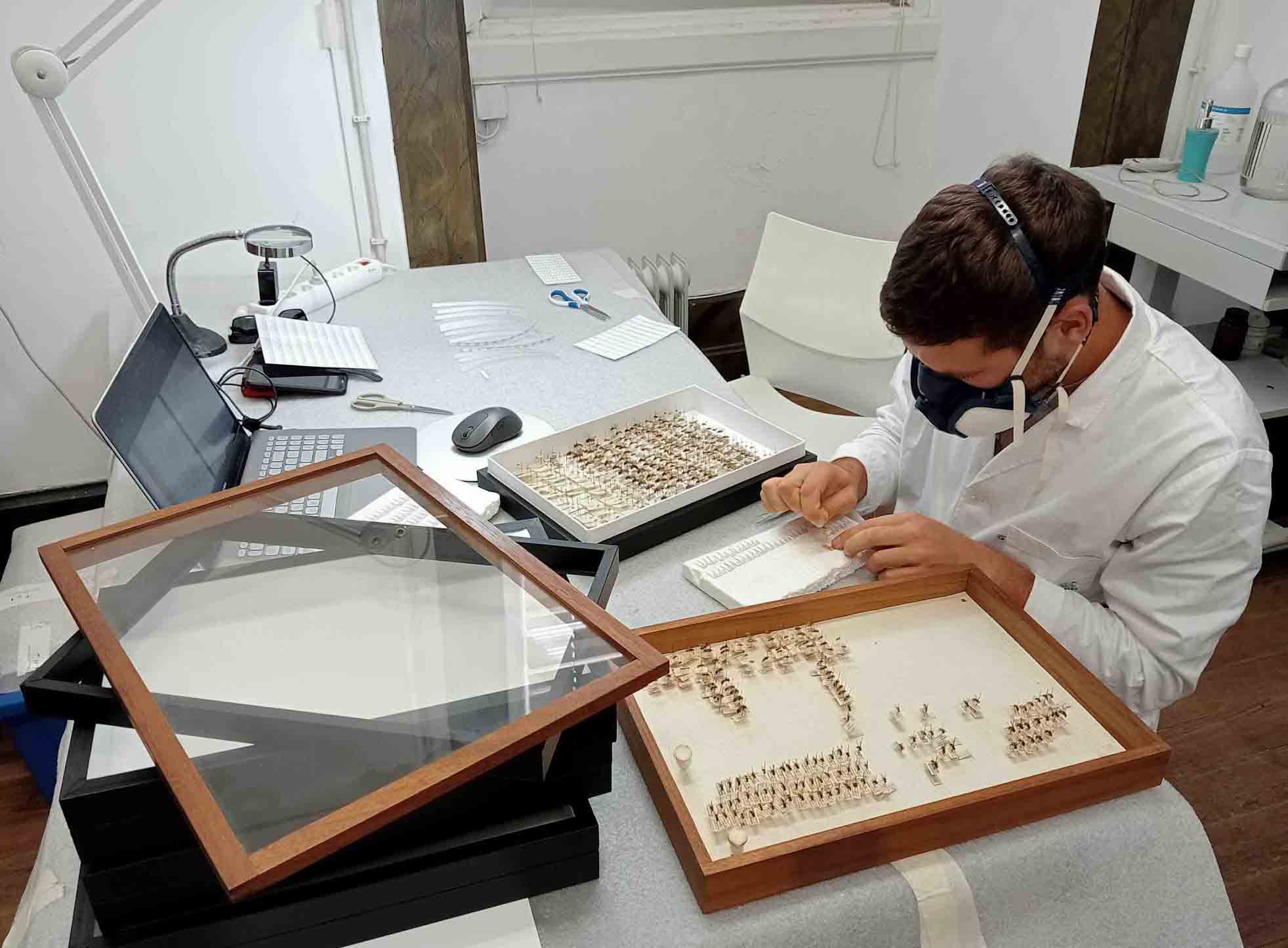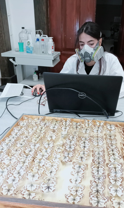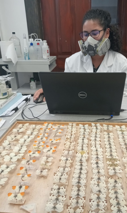 Em relação às borboletas foram já inventariados mais de 3000 espécimes e quase todos identificados até à espécie com a ajuda dos especialistas Eduardo Marabuto e Tatiana Moreira. Ficando a faltar cerca de 1500 borboletas que pretendemos inventariar até ao final deste mês. A “Coleção Nacional” foi indexada, na sua maioria, pela curadora da Zoologia, Cristina Rufino e por um voluntário, Daniel Ribeiro, as coleções “Rosário Pires” de 1980’s e “Pedagógica”, exemplares coletados entre 1987 e 1990 fizeram parte do plano de trabalho de 2 estágios de verão em 2024, do Diogo Vital da Universidade de Aveiro e da Catarina Moniz da Universidade de Coimbra. E, finalmente a coleção do “Colégio de S. Fiel – Cândido de Azevedo Mendes e Joaquim da Silva Tavares”, que está a ser inventariada pela curadora da Zoologia e alunos de Biologia: Ana Costa, Lara Ribeiro, Daniel Laranjeira, Inês Carvalho e Maria Silva. Esta coleção contém, também, exemplares de outros coletores como: Manuel Paulino de Oliveira, Duquesa de Palmela, António Augusto Carvalho Monteiro, Wenceslau de Sousa Pereira Lima, do final do séc. XIX e Anthero Frederico de Seabra, Ernest Matthes, João Miguel Ladeiro, António Paulo, Armando Alves dos Santos, Eusébio Tamagnini, D. F. Noronha, até meados do século XX.