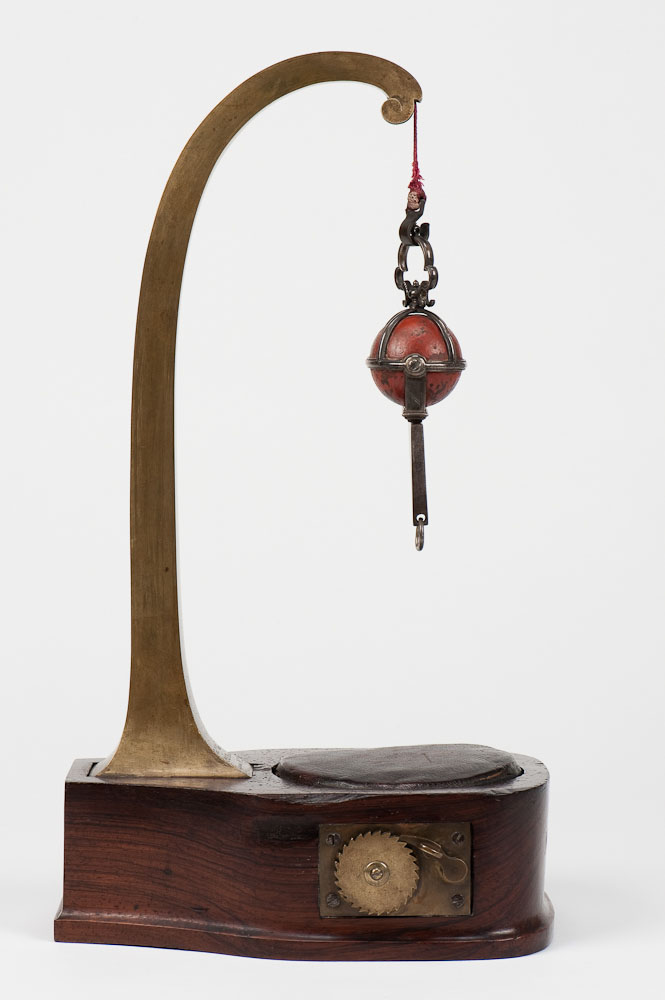 Objeto constituído por um pequeno pedaço de magnetite talhado de forma esférica e suspenso de uma coluna de latão, fixa sobre uma base de madeira. A montagem é bastante elegante: o magnete fica suspenso por uma fita de seda que pode subir ou descer através de uma engrenagem que tem na base. A parte superior da base é forrada por uma almofada de couro para amortecer a queda dos pesos quando era ultrapassada a carga máxima que era cerca de 5 kgf.